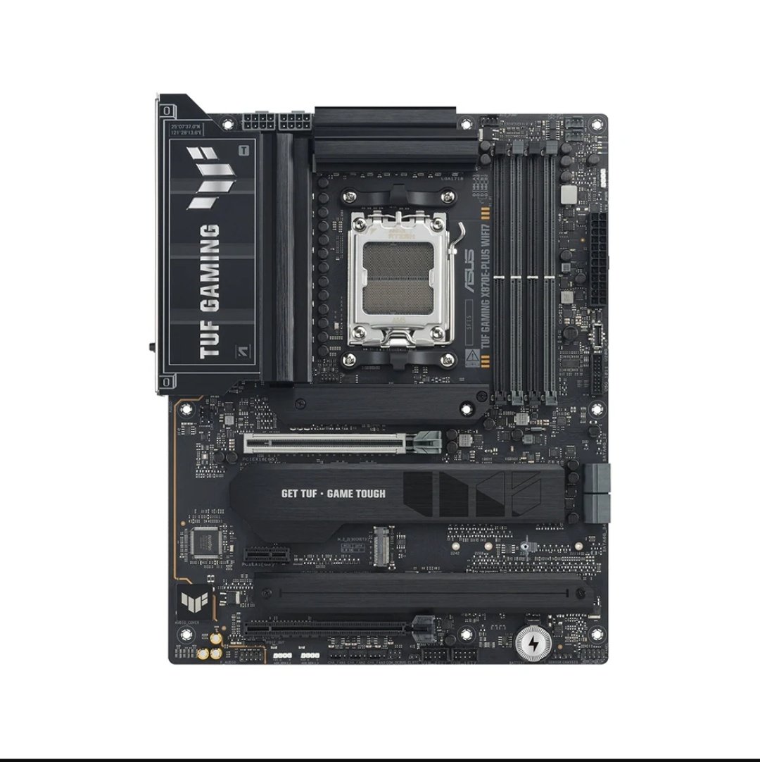The ASUS TUF GAMING X870E-PLUS WIFI7 motherboard runs on the AMD X870E chipset, providing strong support for next-generation processors. It helps deliver reliable performance and efficiency for both gaming and productivity. The chipset also ensures compatibility with modern hardware requirements.