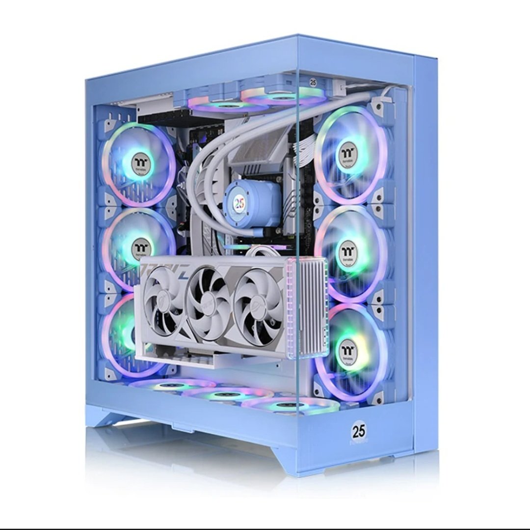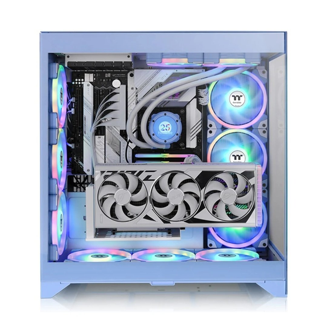 A large tempered glass panel showcases internal components, cooling solutions, and RGB lighting. The Thermaltake CTE E600 MX Hydrangea Blue PC Case ensures your build looks clean, organized, and visually appealing.