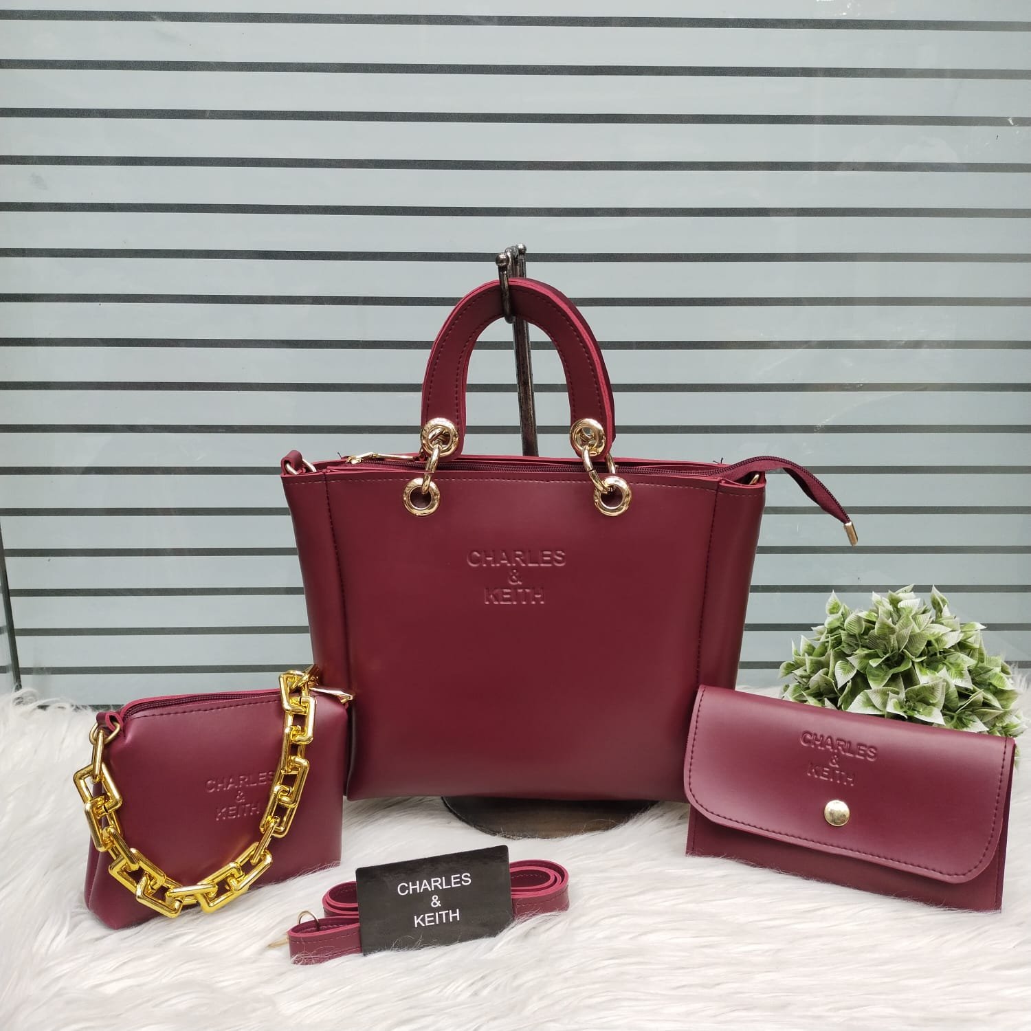 Be the first to review “Charles Keith branded handbag for ladies ,high quality bags for girls 3in 1 set handbag color maroon”