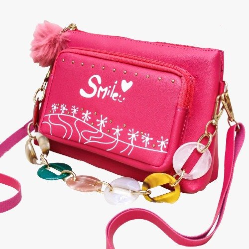 - Presents sling bags made of leather in an array of colors with adjustable strap.