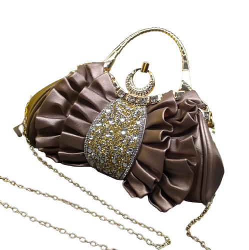 Be the first to review “New ladies Bag diamond pleated dinner Clutch, Clutch metal chain with sling, Women’s evening handbags, purse for bridal, party, wedding”